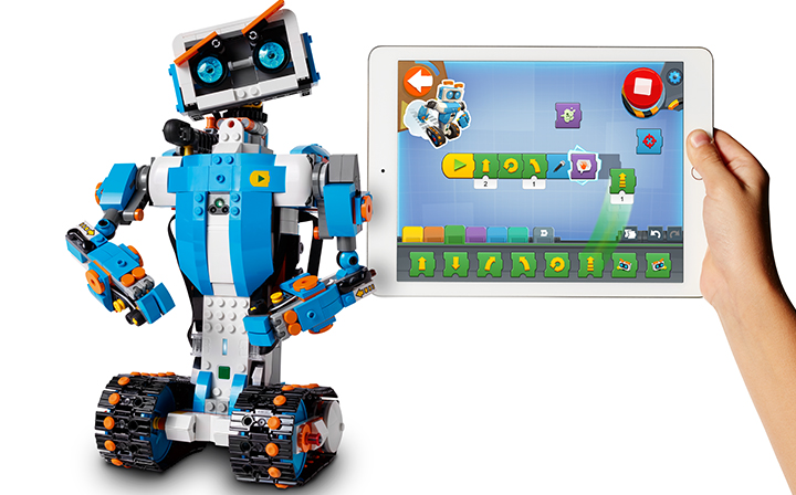 樂高BOOST在去年CES上發表,也得到2017 ToyAward 中SchoolKid國小組獎項,將 Mindstorm (45544, 31313) 的科技機器人再演進,變小變簡單加上豐富的趣味性, 成為適合七歲以上小小朋友都玩樂的迷你機器人系列,第一套產品取名叫「Creative Toolbox 創意工具箱」。在平版上下載BOOST程式後,可以用簡單的拖拉方式, 寫出程式來控制BOOST的動作,收到感應器收到訊號後來進行程式化反應。對喜歡動手做的孩子來說,這盒樂高可以做出許多趣味十足的高度互動的作品,比如按下門鈴時,會有聲音, 門會自動打開,或是不斷找目標的樂高炮,來回掃描,當有人或動物聲音發生時,就會自動發射。